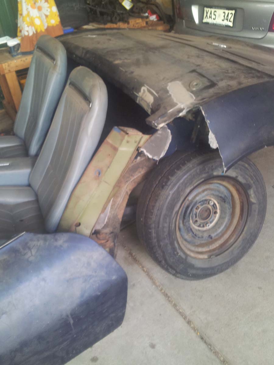 The Corvette hit a gum tree 45 years ago and was parked up in a shed. I had to bring her home.
