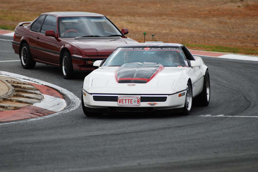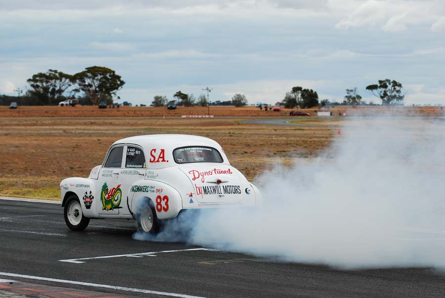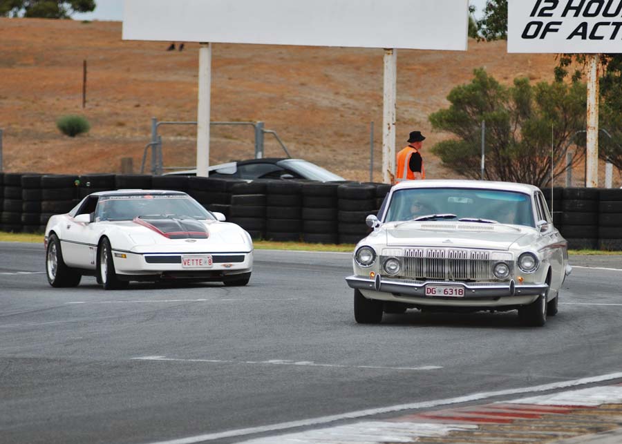 We met at OTR Bolivar at a sparrows fart time of the morning to be at the track by 8am. Met the Cadillac La Salle Club of SA in the car park of the track, where we had a bit of a meet and greet!! Once parked, had a walk around the cars, watched the racing and mingled for the day! Some amazing racing was seen in these old cars. What a hoot!! We also did about 5 parade laps during lunch, which was great… especially when a hotted up Camaro was turfed off the track for hooning…. He may have been in the Cadillac club…maybe…..!! Sean Hayter along with his neighbour, Rod also came in the Commodore, so Sean had the Navigator seat in the Dodge for the parade laps and Alan gave Rod a thrill in the Corvette. Thanks to Peter and Lyn, Alan Litchfield and Greg Woods for coming in their cars and Sean and neighbour Rod. Thanks Greg for shooting us while we were on the track! Sorry it fell on the same day as McLaren Vale Vintage and Classics. Maybe next year!