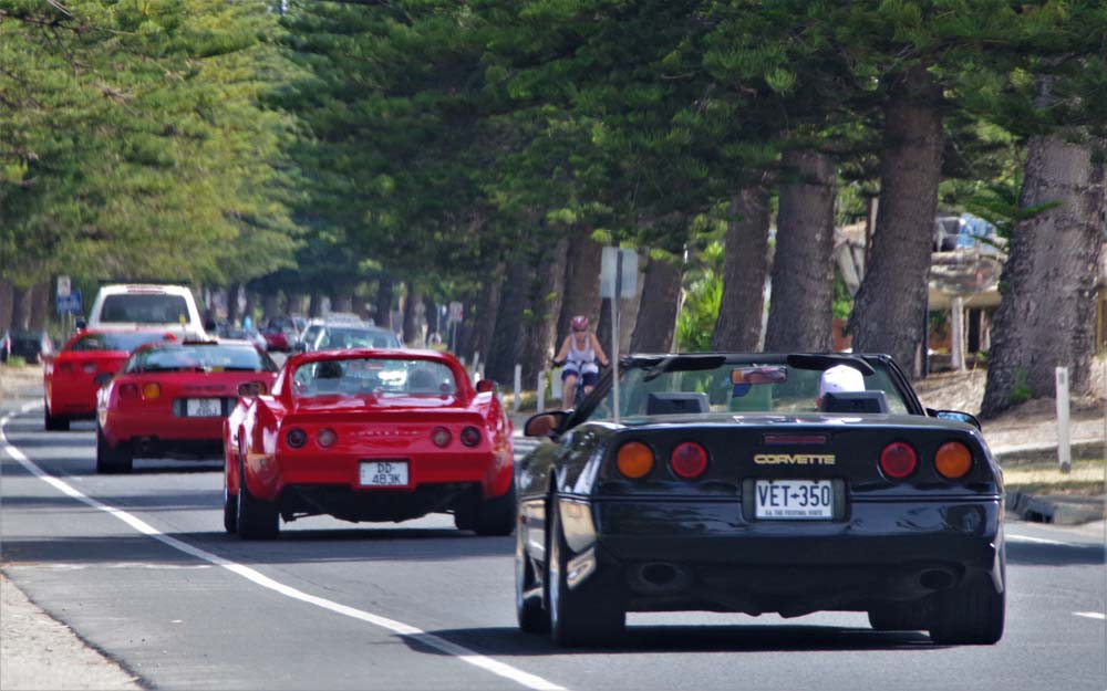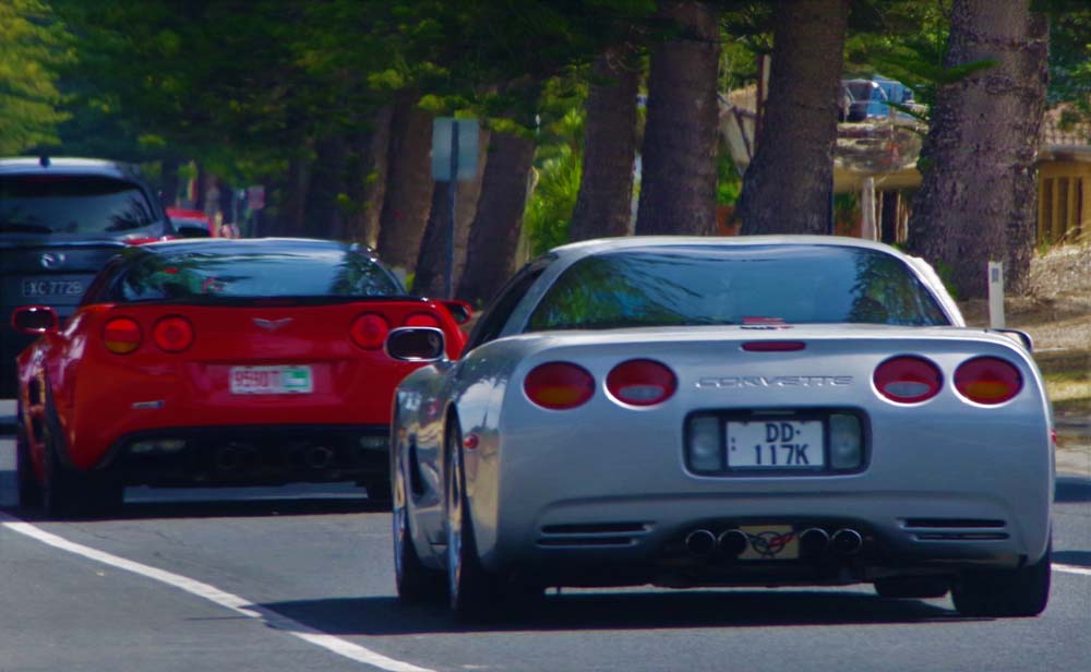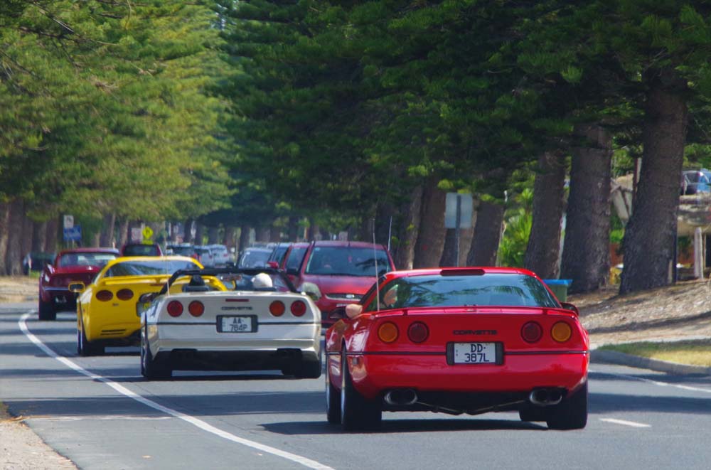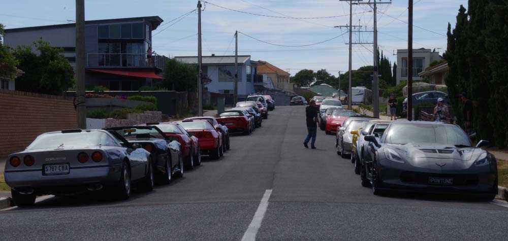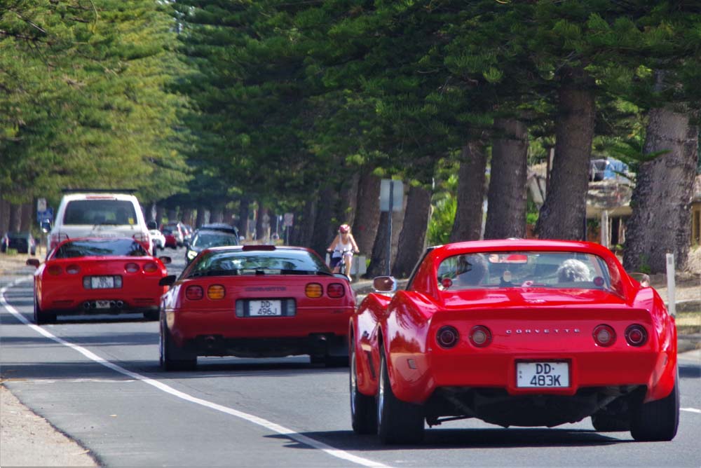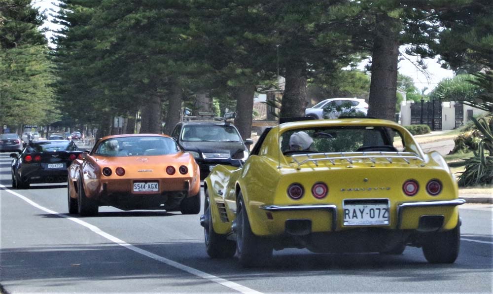 The Corvette caravan headed off up the Esplanade to the smiles and waves of the adoring public but without a U turn it was soon replaced by the obligatory C3 fuel stop instead. It’s always C3’s (except for Jim’s famous Nullarbor incident of course), they must have extra small fuel tanks in them.