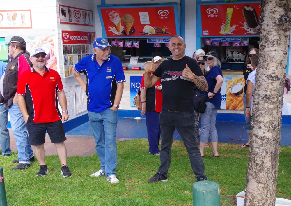 It was a warm sunny morning and the carpark on the beach was full, which was rather inconvenient as that was our meeting spot for the cruise. Luckily Pete and Lynda turn up early everywhere and he had all the cars parked up the nearest side street as everyone gathered for a coffee at Noonies.