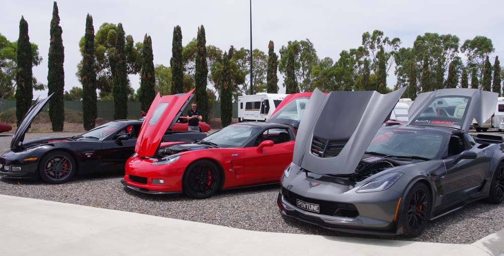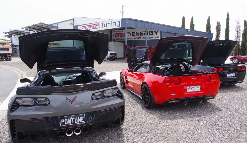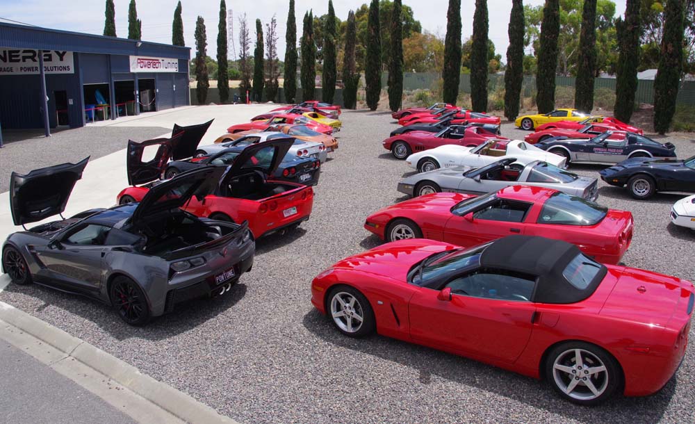Banjo Brian had an offer of a club event at the business of Powertech/Camperagent on Pt Wakefield Rd, with a free lunch thrown in as part of the deal from the owner John Munro. Traditionally club events that include free stuff are well attended and 25 Corvettes rolled up. John Munro arrived for the cruise in his modified C7 Z06 with a family member in his C6 ZR1.