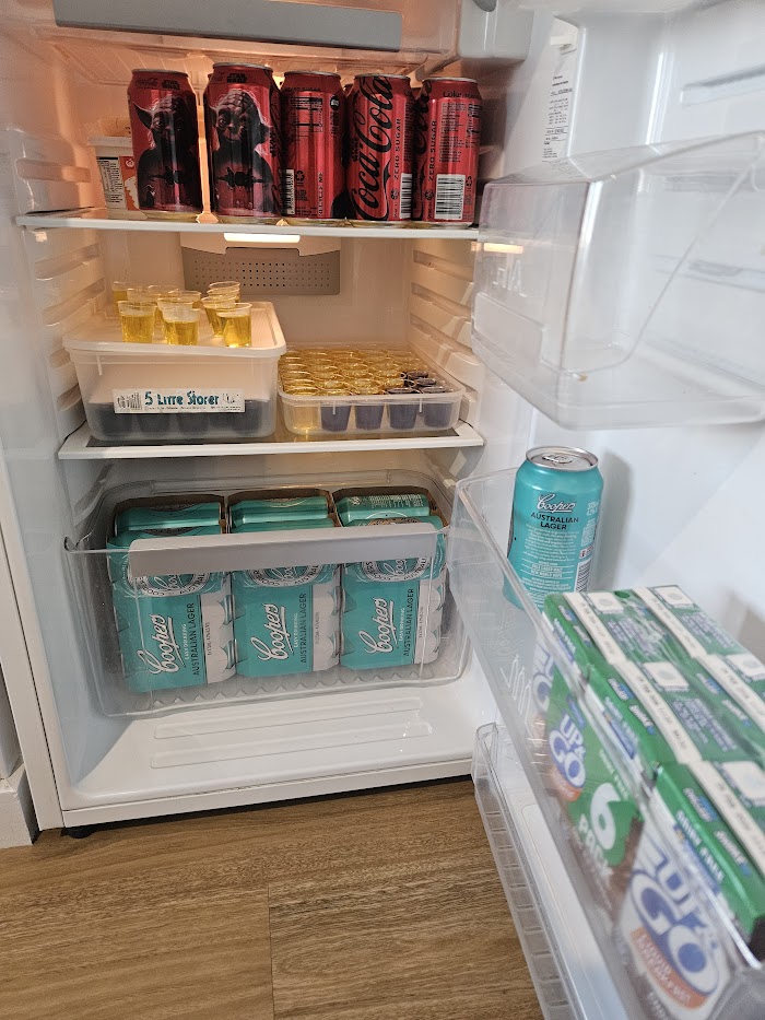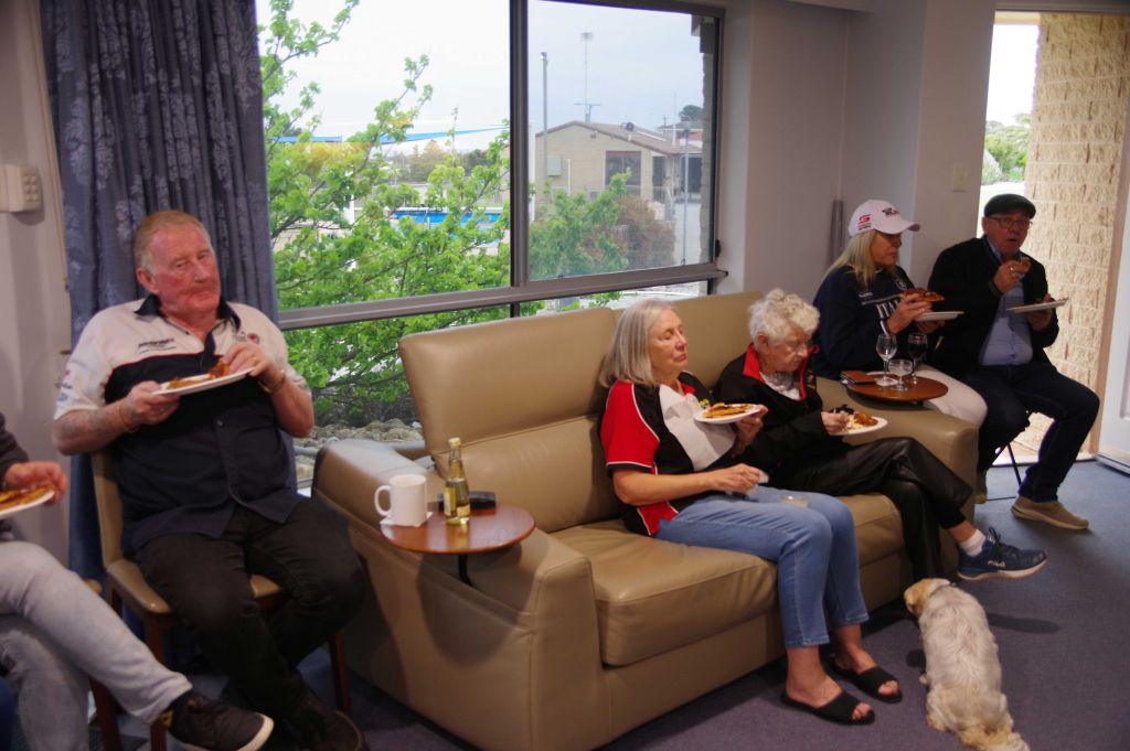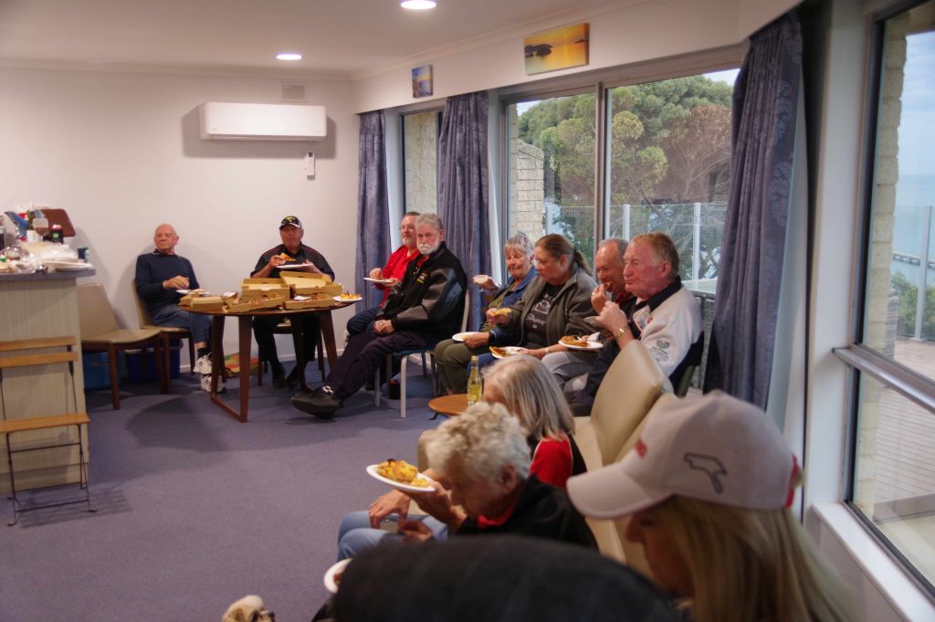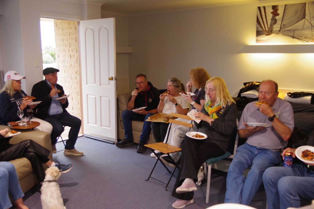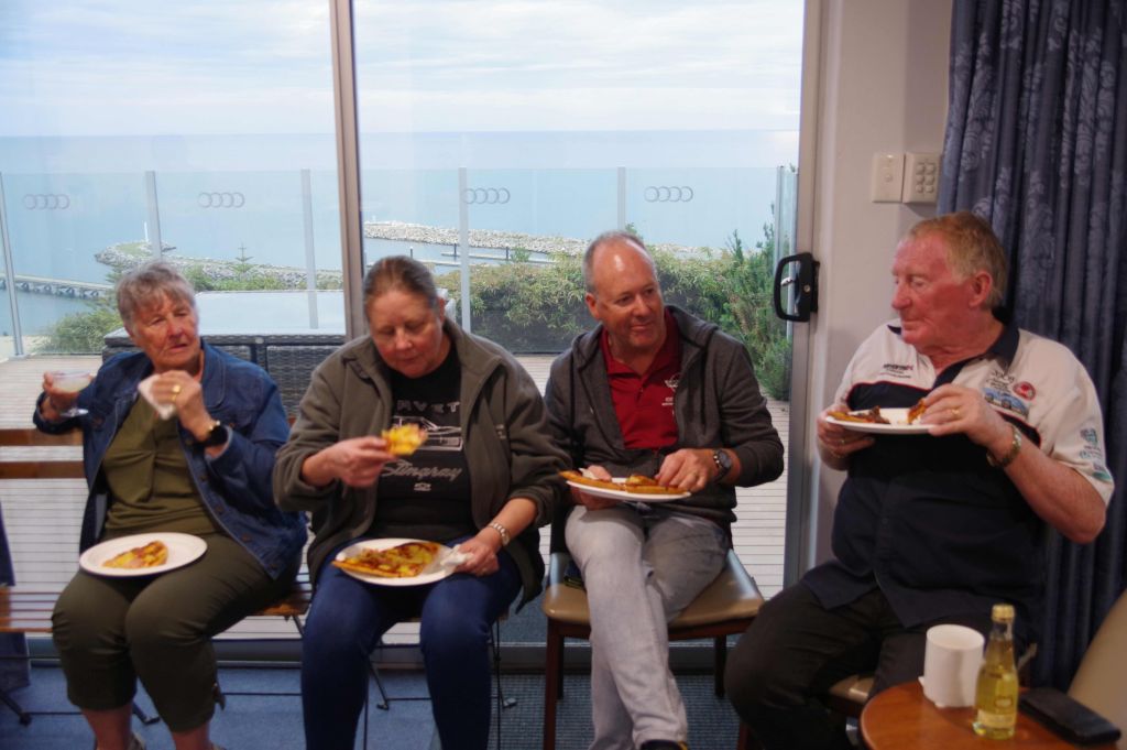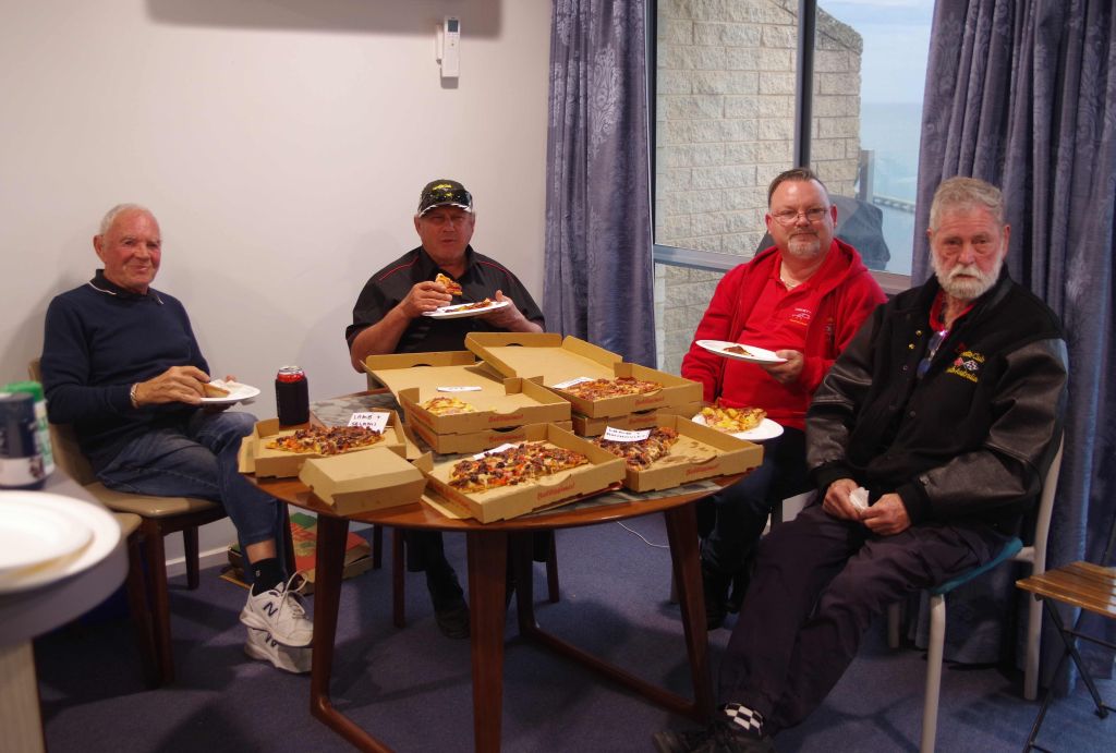 Dinner that night was takeaway pizza from the Hotel in town. We crowded into the McBride's Penthouse to eat, drink and again, get fatter. Lyn organised a name draw with Tim and Chris winning a couple of great prizes without any effort. We were