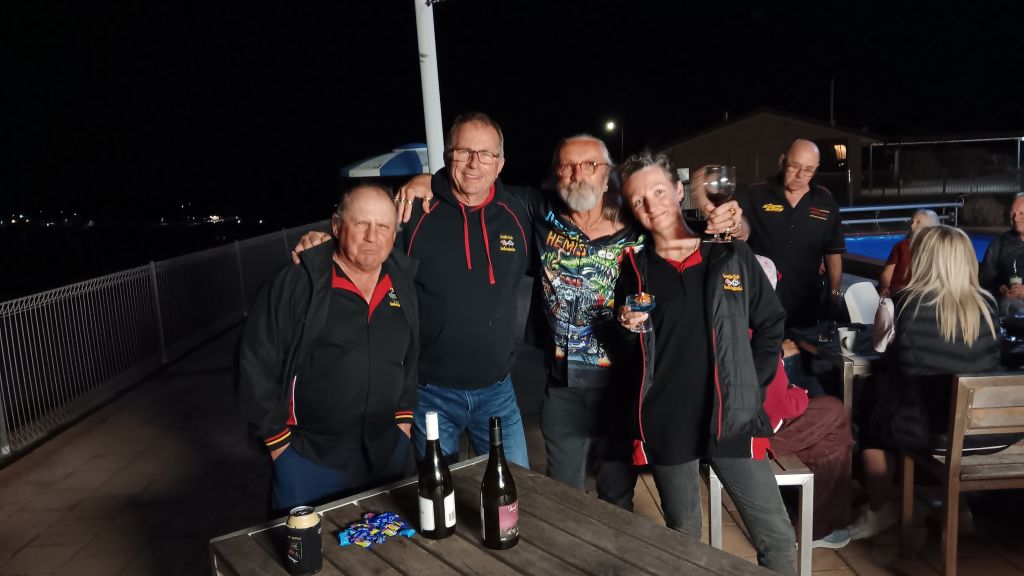 That evening, we had 3 tables booked at the Dalrymple Hotel, Stansbury. The pub did a amazing job in getting the food out to us considering they were packed with long weekend holiday crowds. It was also great to have local club member Alan & partner Peta with friends join us adding to the good times.