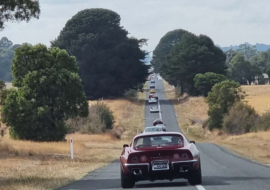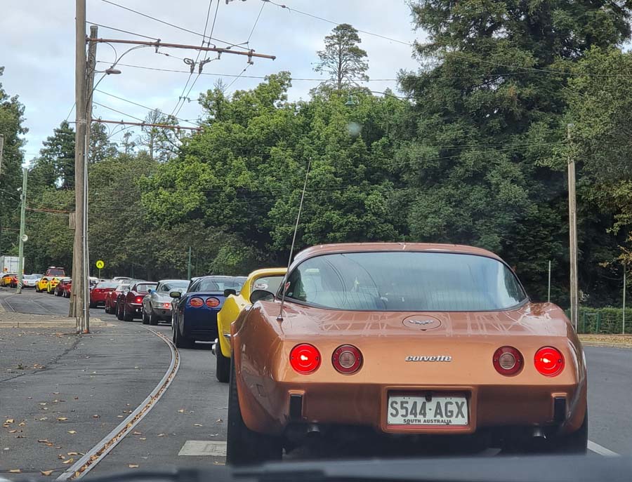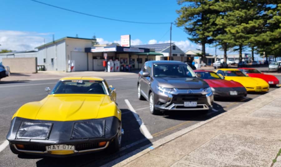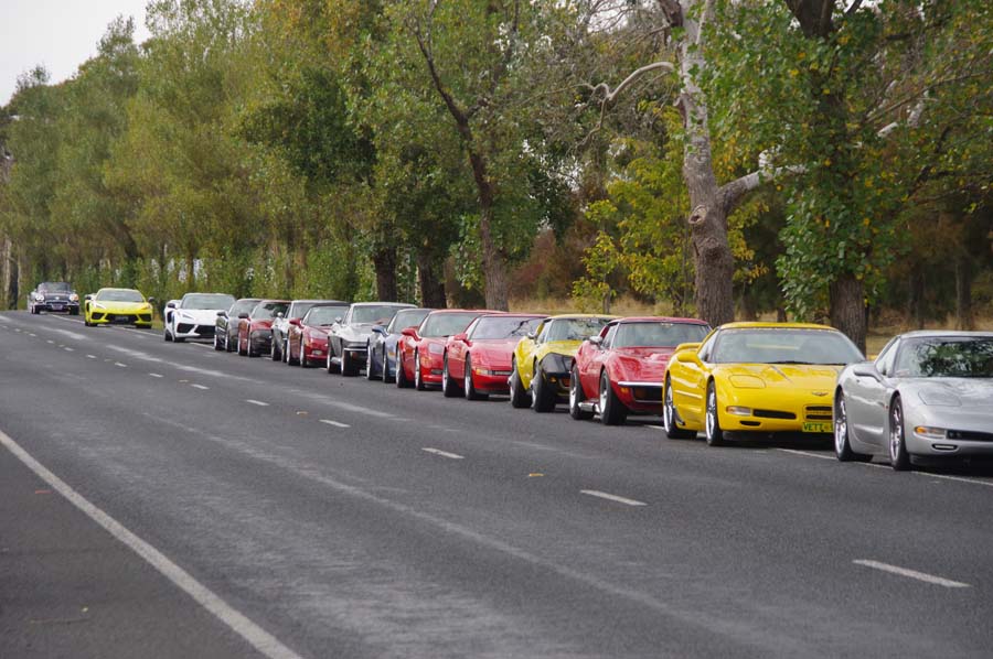 It all started with a sunny 29-degree day, with our meeting place for the Corvettes Australia Day Run at McDonalds Frewville. Arriving at 9:15 am to find 5 Vettes parked there. A keen bunch of cruisers! We made our way inside, meeting members as we went in, handing out our maps and manifest for club records. It wasn’t long before the carpark had overflowed with Vettes, so the remainder of the cars parked at Bob Jane’s next door, sweet. With everyone all coffeed up it was time for the Captain’s speech, short & sharp, so all members moved off to their cars. As I backed out of my parking space a large bang sounded. A cold shiver ran through my body thinking a Corvette had been involved in a collision, on further inspection it happened to be 3 small cars rear ending each other. So their day seemed to be over but our day had just begun, driving up Glen Osmond Rd toward the Toll Gate. Corvettes doubled up to allow everyone onto the freeway. The run up to Stirling went smoothly, turning off we were joined by Serge & Joe, Wayne & Sue. At Mylor, the bridge repair had not been finished with a set of stop lights to pass through. Waiting on the other side a blue C8 appeared from no where, he must have got a shock to see all the Corvettes waiting in line haa haa. With everyone through the bridge it was on to Meadows for a coffee break. It was here we picked up Stuart & Ruth, Phil Turbill, Graham & Debbie Johns, Angelo & his family in their Camaro (nice car). Short stop / chat then onto our last leg of our run to Wellington Hotel. As we drove the hills, looking back in the mirror I saw 28 Vettes ranging from C3 to C8 running back a mile long. A special part of the run. Driving into Strathalbyn Colin & Cyndy had prebooked their pickup point with me beforehand. Good job guys. It didn’t take long to arrive at Langhorne Creek then Wellington Hotel, arriving at 12:15 pm, good timing. The Wellington Hotel Carpark filled up quickly with everyone hitting the bar for drinks & meal orders. I think the bar staff were under the pump but managed it well. As the meals started to arrive it was made clear that you were not going home hungry. There were a few mix ups, but all sorted out. A big Well Done, Wellington Hotel. I would like to thank everyone that came on the run. Also thanks to Peter McBride for taking photos, also Tony BeerSmith for the maps & routes. Get well Tony & Faye. And then there’s Joy. Thanks, love, for helping me putting it all together. HAPPY AUSTRALIA DAY Write up by Graeme, photos by Peter