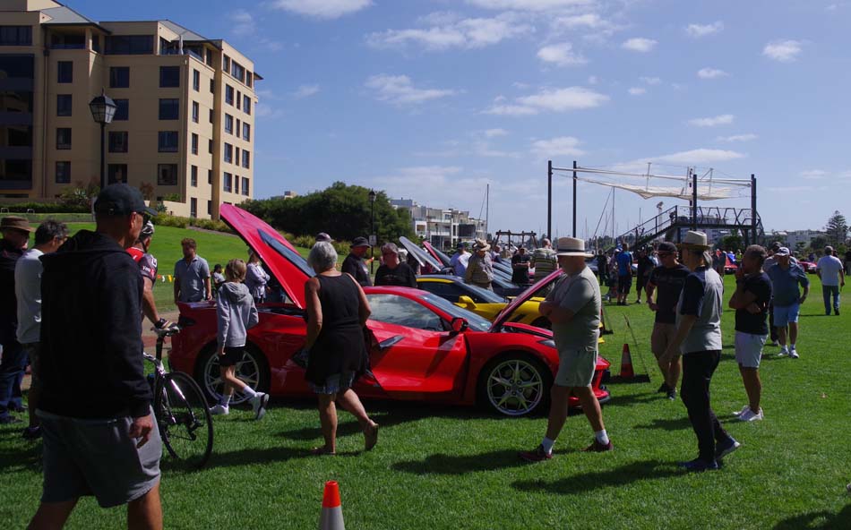 Early start under clear blue skies for our annual Corvettes Rock the Bay show at Wigley Reserve, Glenelg. 1st job was to set up the various tents & park the generation car line up. This year we had 2 cars from each generation from 1st to last, where possible, & 1 C8.